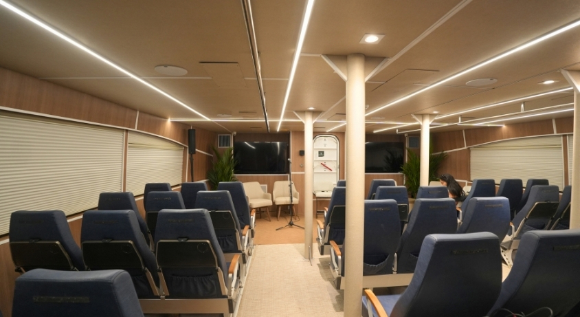 Toda a operação interna — incluindo iluminação, climatização e áreas de convivência — também é alimentada por hidrogênio verde, reforçando a proposta de autonomia energética.