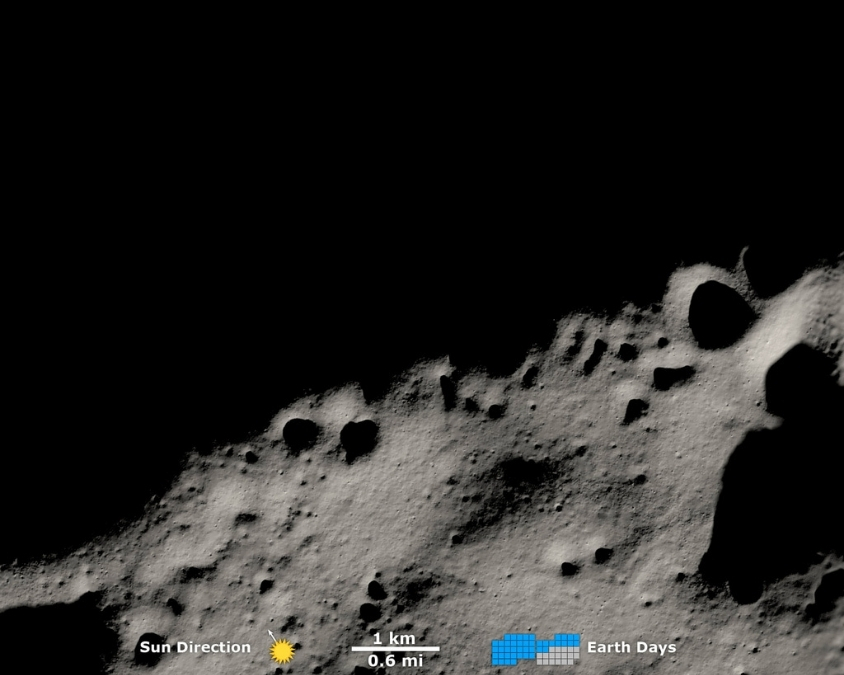 Acredita-se que o maciço de Malapert (nome informal) seja um remanescente da borda da bacia Polo Sul-Aitken, que se formou há mais de 4 bilhões de anos. Mais recentemente, este magnífico pico (canto inferior esquerdo) foi selecionado como uma possível região de pouso da missão Artemis III. Crédito: NASA/GSFC/Universidade Estadual do Arizona