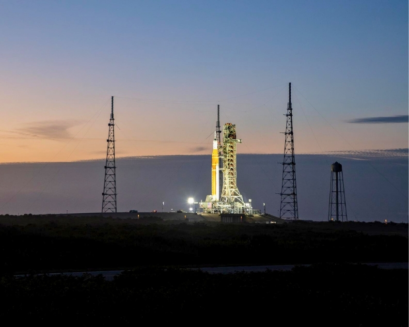 O SLS e a Orion decolaram do Complexo de Lançamento 39B no Centro Espacial Kennedy às 1h47 da manhã (horário do leste dos EUA) do dia 16 de novembro, iluminando o céu noturno. Uma avaliação inicial mostrou que o foguete teve um desempenho preciso, atendendo ou superando todas as expectativas em seu lançamento de estreia. Foto: NASA/Joel Kowsky.