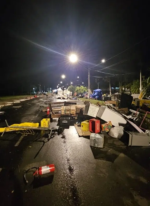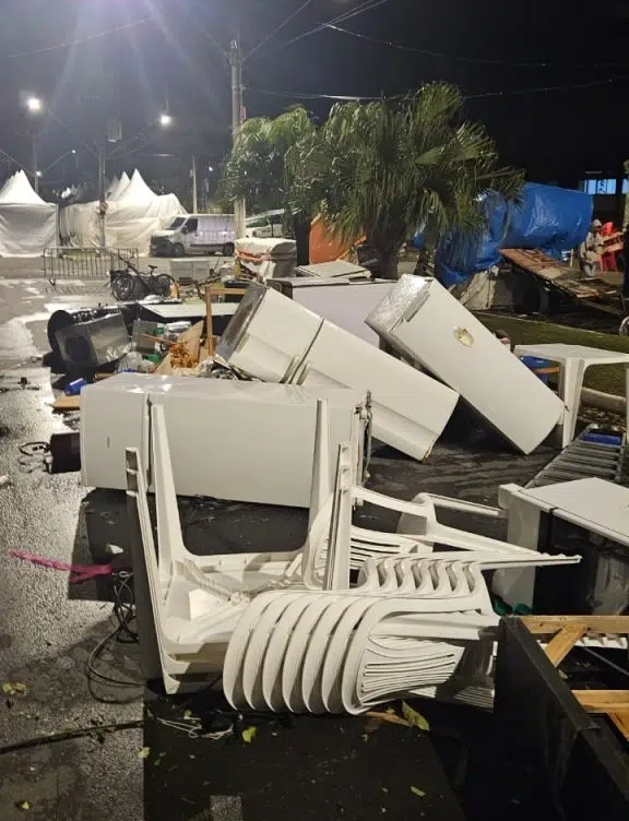 A Defesa Civil recomenda não se abrigar debaixo de estruturas metálicas frágeis, como tendas ou coberturas improvisadas. Outras recomendações são reforçar telhados, janelas e portas com travas e trancas, retirar objetos soltos de áreas externas, como vasos, bicicletas, lonas e móveis de jardim, não estacionar veículos próximos a árvores ou postes e manter distância de fiações elétricas caídas. Em caso de emergência, acione imediatamente o Corpo de Bombeiros (193) ou a Defesa Civil (199).