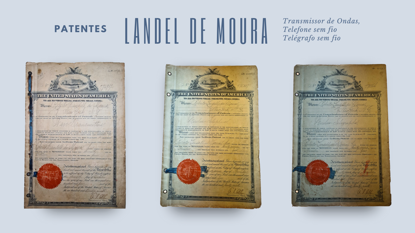 Patente do “Wave Transmitter” – Transmissor de Ondas, o precursor do rádio. Imagem obtida no Departamento de Patentes dos Estados Unidos. Patente 771.917 de 11 de Outubro de 1904. atente do “Wireless Telephone” – Telefone sem fio. Imagem obtida no Departamento de Patentes dos Estados Unidos. Patente 775.337 de 22 de Novembro de 1904. Patente do “Wireless Telegraph” – Telefone sem fio. Imagem obtida no Departamento de Patentes dos Estados Unidos. Patente 775.847 de 22 de Novembro de 1904. Fotos: Edison Hüttner