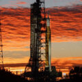 Destaque – A Lua brilha sobre o SLS (Sistema de Lançamento Espacial) e a espaçonave Orion, no topo da plataforma de lançamento móvel, em 1º de fevereiro de 2026. O foguete está atualmente na Plataforma de Lançamento 39B do Centro Espacial Kennedy da NASA, na Flórida, enquanto as equipes se preparam para um ensaio geral na água, a fim de praticar os cronogramas e procedimentos para o lançamento da missão Artemis II. Crédito: NASA/Sam Lott