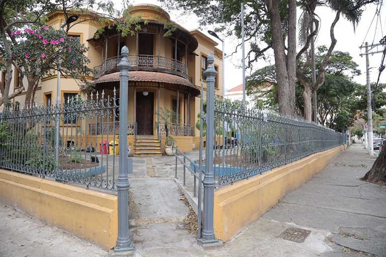 Av. Rio Branco, 1210 — Construído no fim do século 19 para Dona Chiquinha Ribeiro do Val, figura ligada à elite paulistana, o casarão foi projetado pelo arquiteto Pedro de Mello e Souza. É um dos principais exemplares da arquitetura eclética da região, com recuos em todos os lados e fachada ornamentada. Foto: ICT / Unesp / Divulgação