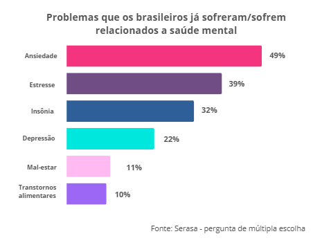Os brasileiros entrevistados afirmam já lidar com problemas de saúde mental, independentemente das dificuldades financeiras. Neste cenário, o estresse financeiro pode atuar como um gatilho preocupante.