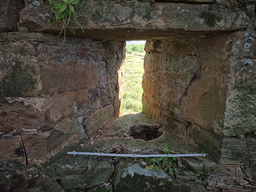 Essa hipótese é comprovada quando identificamos a existência de seteiras no paredão. A seteira é uma abertura estreita e comprida feita em muros de pedra para defesa, uso de armas de longo alcance como arcos, bestas ou mosquetes. Esse mesmo recurso de defesa das construções existe na Estância Libertadora em Uruguaiana, RS.